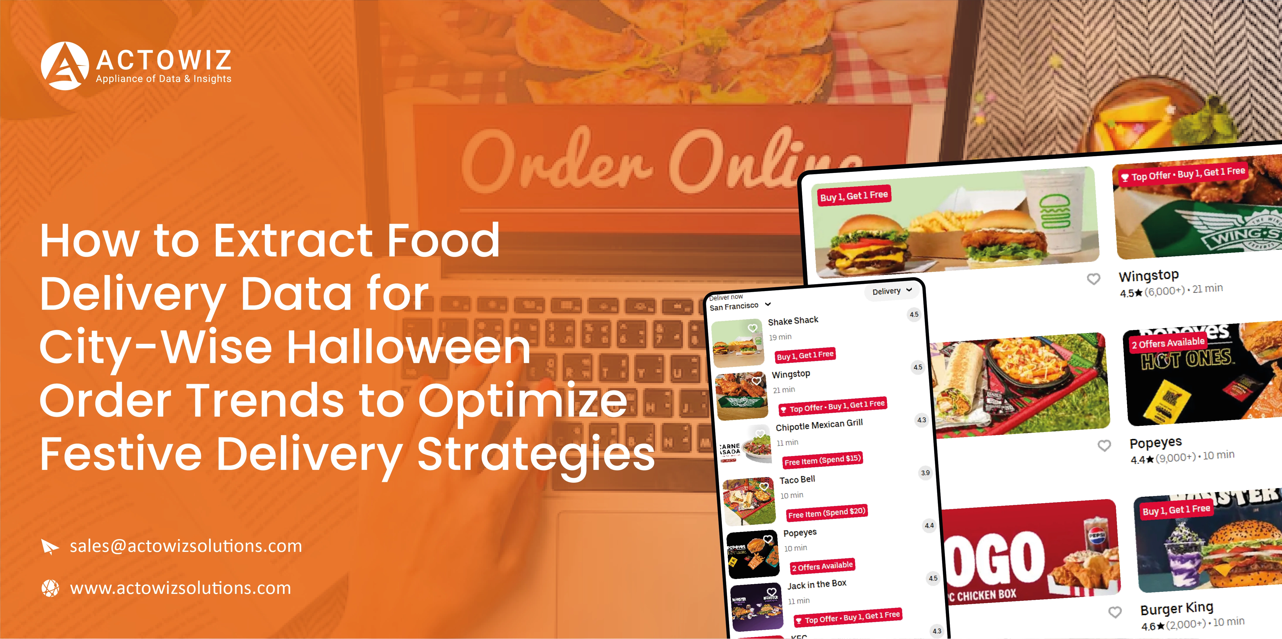 Halloween is one of the busiest times for food delivery platforms in urban areas, with orders spiking for themed menus, party platters, and seasonal treats. For food delivery businesses and restaurants, understanding city-specific demand patterns is critical to planning inventory, staffing, and promotions. Traditional methods of analyzing orders often lack real-time insights and fail to capture the nuances of local trends. This is where data intelligence becomes a game-changer. By leveraging Extract Food Delivery Data for City-Wise Halloween Order Trends, businesses can identify peak demand windows, track menu popularity, and optimize their delivery strategies. Actowiz Solutions uses advanced Scraping Festive Food Delivery Data to Track Halloween Demand techniques to provide actionable insights that allow brands to stay ahead of competitors, reduce missed orders, and enhance customer satisfaction. Our approach transforms raw online data into strategic intelligence that drives better decision-making during festive periods.