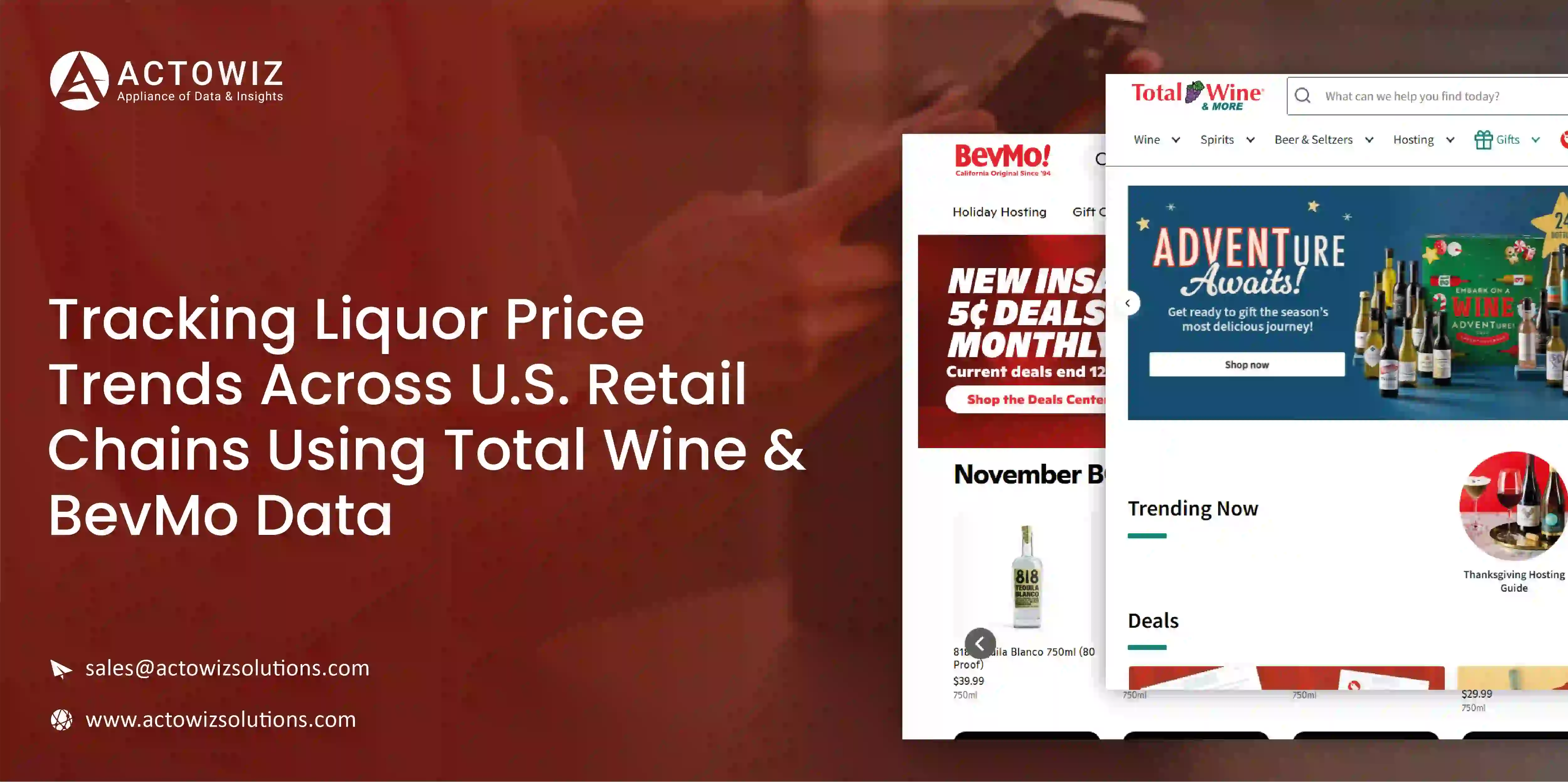 In the highly competitive U.S. liquor market, understanding pricing trends across retail chains is crucial for both distributors and retailers. In 2025, Actowiz Solutions partnered with a leading beverage analytics firm to support their efforts in Tracking Liquor Price Trends Across U.S. Retail Chains. Using advanced Web Scraping Services and Extract BevMo Data for Liquor Price Tracking, Actowiz developed automated solutions to extract pricing and promotional data from Total Wine & BevMo apps, enabling real-time analysis of pricing fluctuations, seasonal discounts, and competitor strategies. The project aimed to provide actionable insights, identify pricing trends, and support data-driven business decisions. Through precise Liquor Data Scraping Services, the client could gain a comprehensive understanding of the retail liquor landscape, enhancing forecasting accuracy and optimizing promotional planning.
