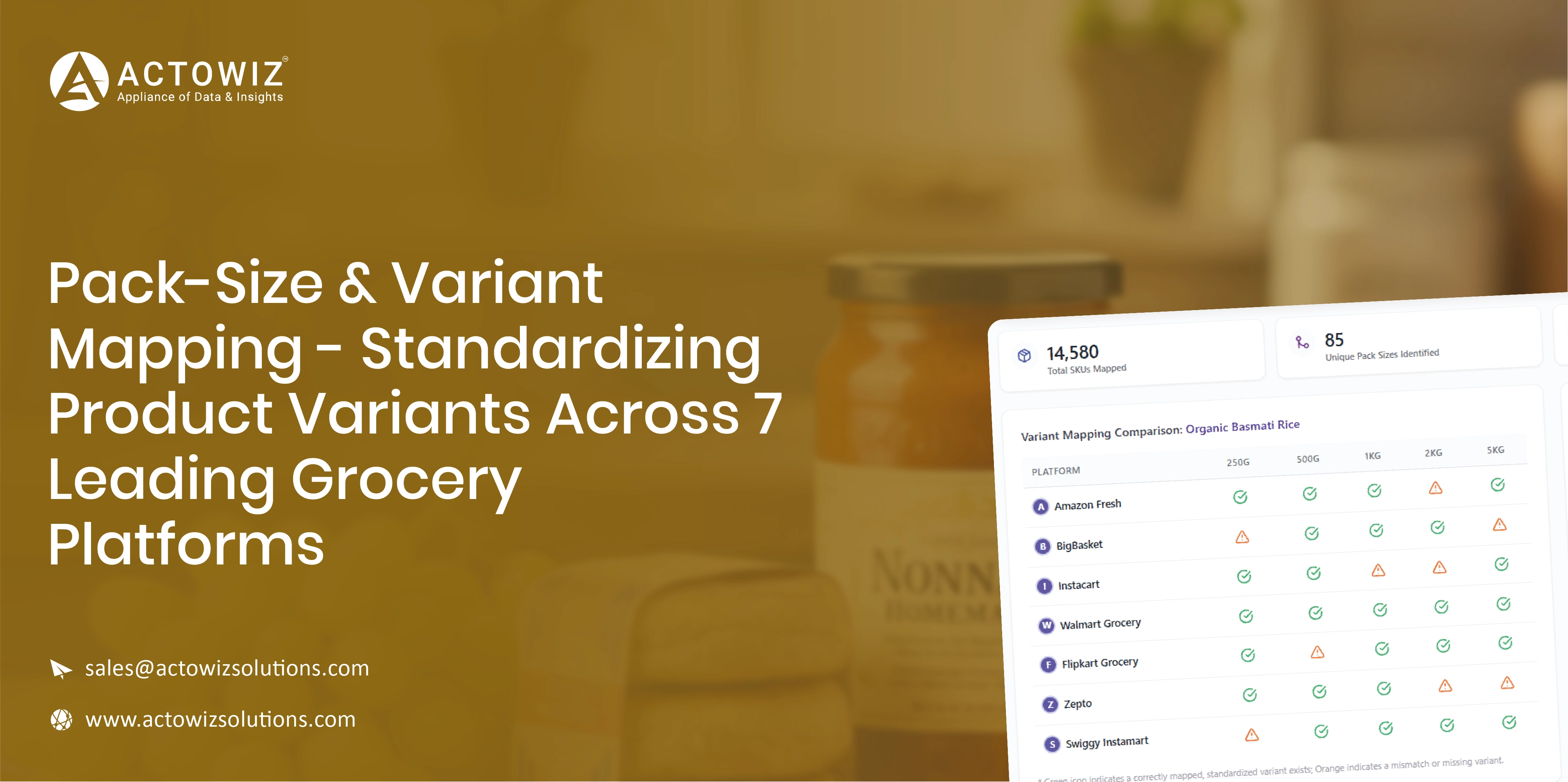 In today’s competitive digital grocery ecosystem, consistent product representation across platforms is critical for accurate pricing, assortment planning, and consumer trust. Grocery platforms often list the same product in multiple pack sizes, weights, or formats, making comparisons complex and error-prone. This case study explores how Actowiz Solutions successfully implemented Pack-Size & Variant Mapping to standardize product variants across seven leading grocery platforms.